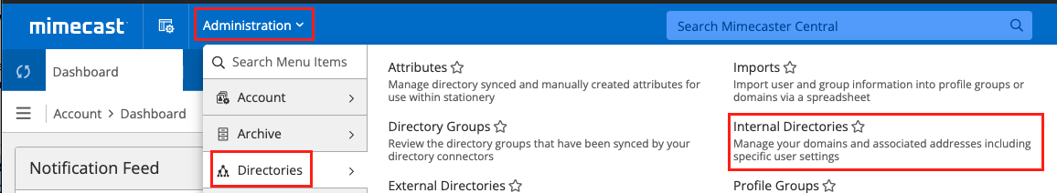 - Log into the Mimecast Administration Console with a user who has the Admin role