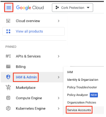 - Open the navigation menu with the hamburger menu and navigate to IAM & Admin > Service Accounts