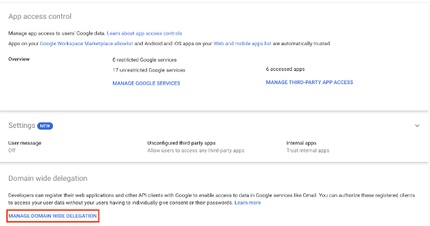 - Click MANAGE DOMAIN WIDE DELEGATION