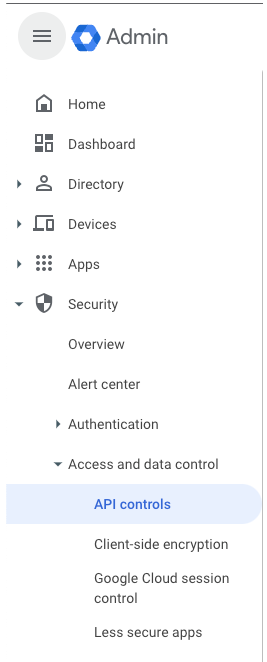 - In the left hand navigation menu navigate to Security > Access and data control > API controls.
