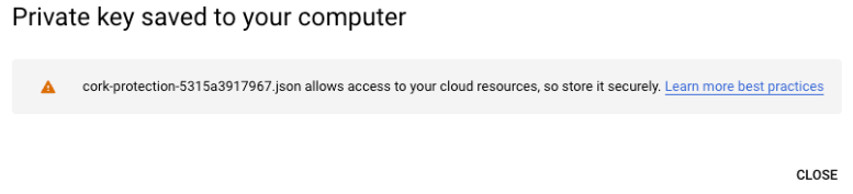 Then, select the newly created Cork Protection project from the project picker, Navigate to the IAM & Admin > Organization policies, enter Disable service account key creation in the Filter field of the table and then select the entry corresponding to the constraint ID provided from the error, which will navigate you to the Policy details page. From here, click MANAGE POLICY, select Override parent's policy, ADD A RULE, set Enforcement to off, and then SET POLICY to apply. Now after Google has propogated these changes in the environment (1-5 minutes), you should be able to retry this step again.